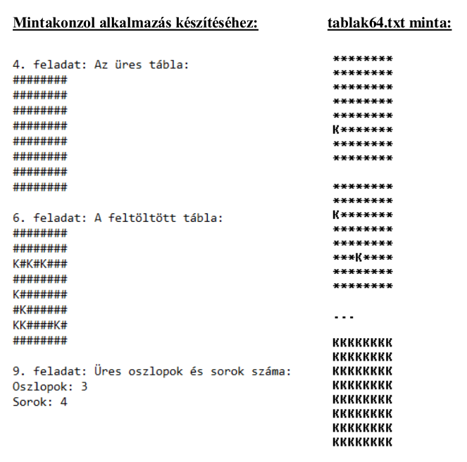 - 10. Hozzon létre 64 darab Tábla típusú osztálypéldányt és tárolja a tablak64.txt
