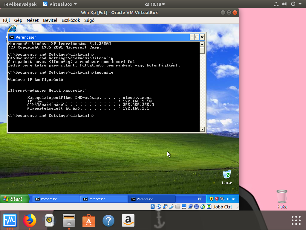 option domain-name „cisco.vizsga”; → DNS-szerver neve